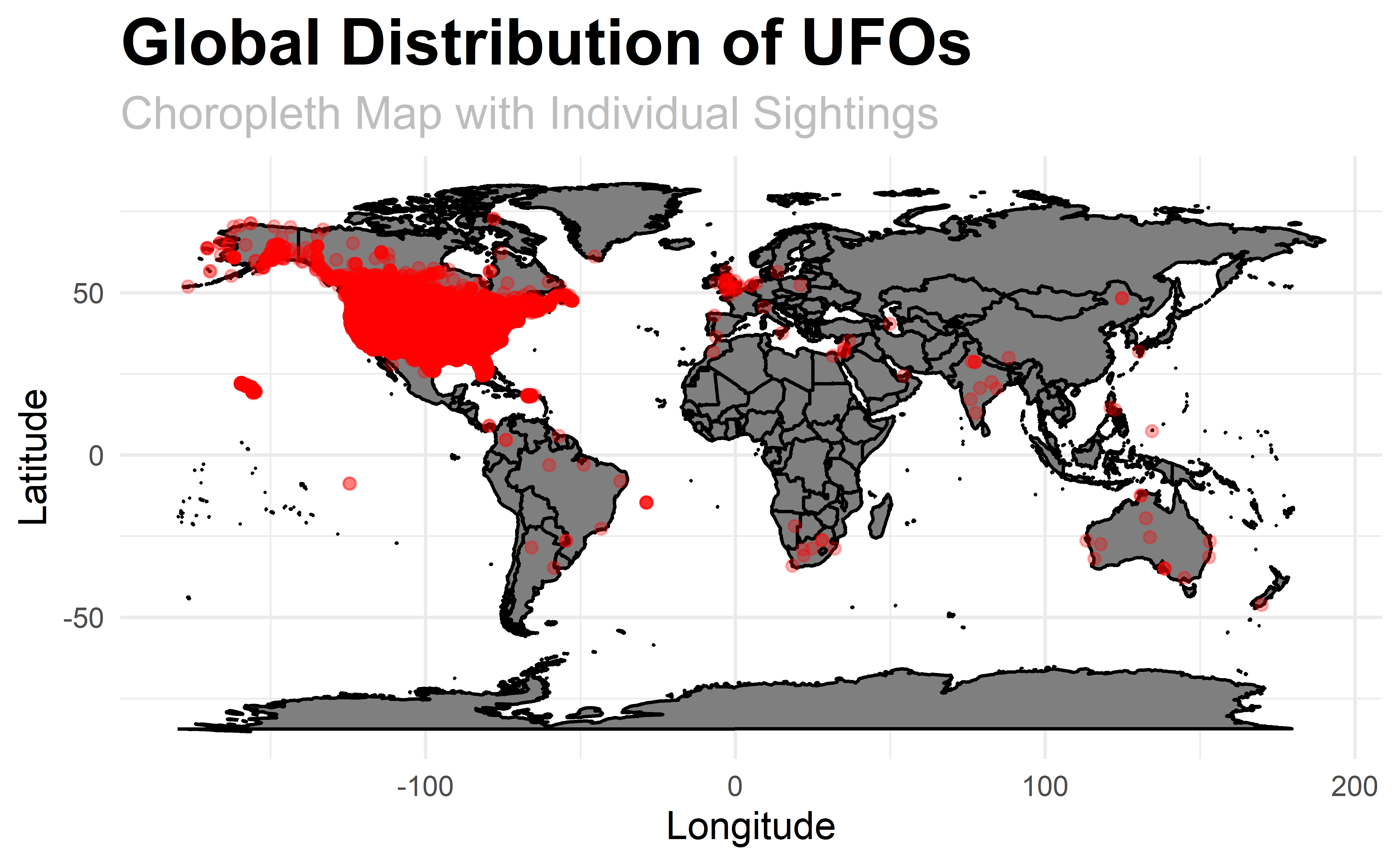 “UFO Sightings Redux” dataset is obtained from National UFO Reporting center. The dataset offers a detailed look into various aspects of UFO sightings, including temporal details, geographical information, and specific characteristics of the reported sightings.Our mission is to decipher patterns, trends, and anomalies within this dataset. By employing data analysis techniques, we aim to uncover temporal, spatial, and thematic insights that may bring us closer to understanding the enigmatic world of UFO sightings.