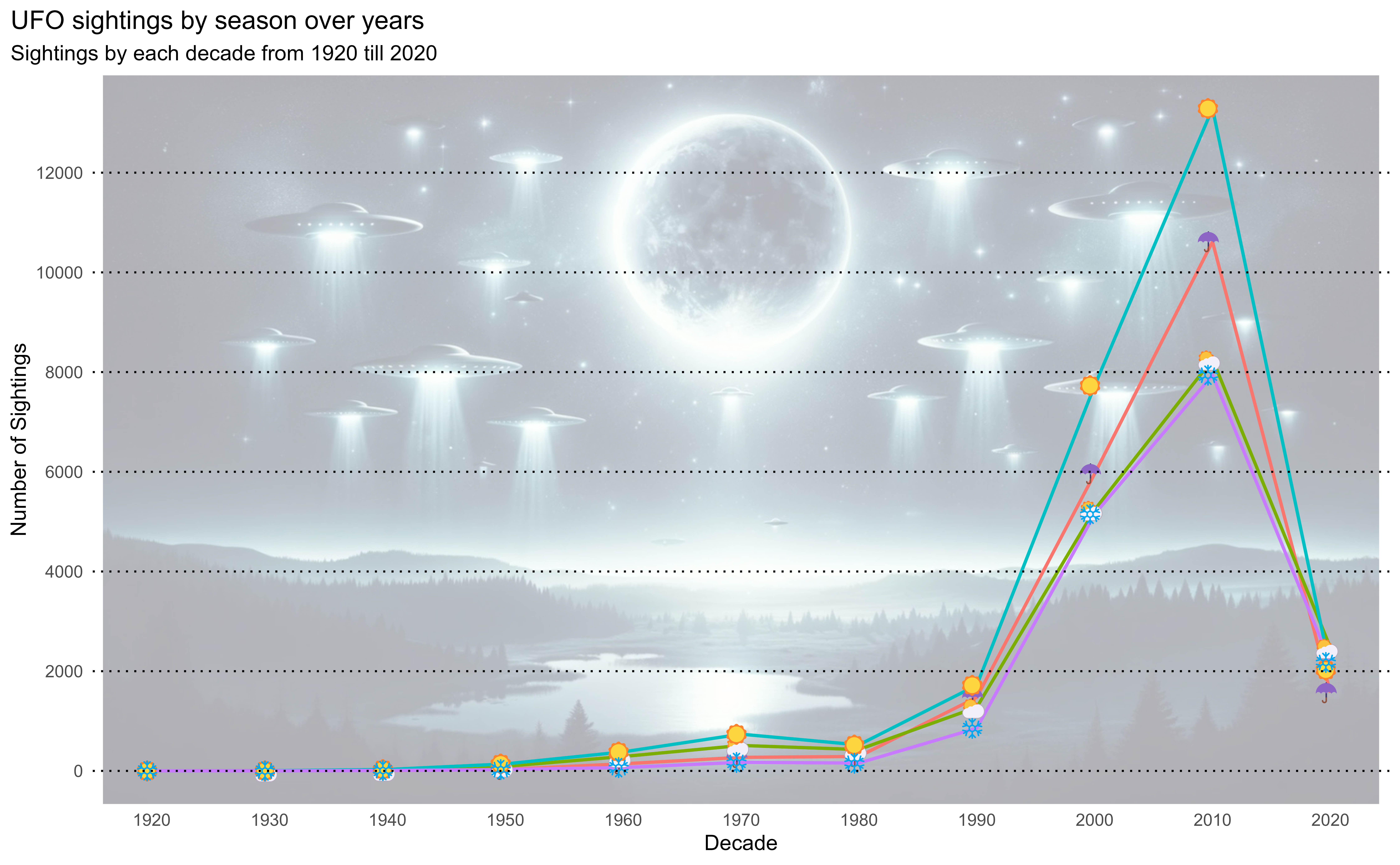 Are there any patterns to the sightings concerning seasons? Do astronomical events affect the reported sightings?
