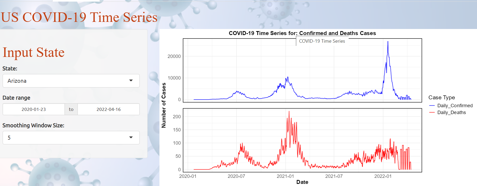 Utilizing Shiny app package for interactive and user-friendly data visualization.